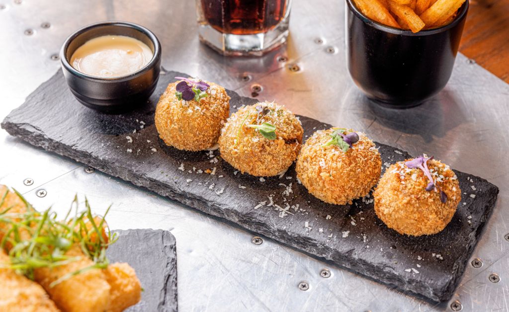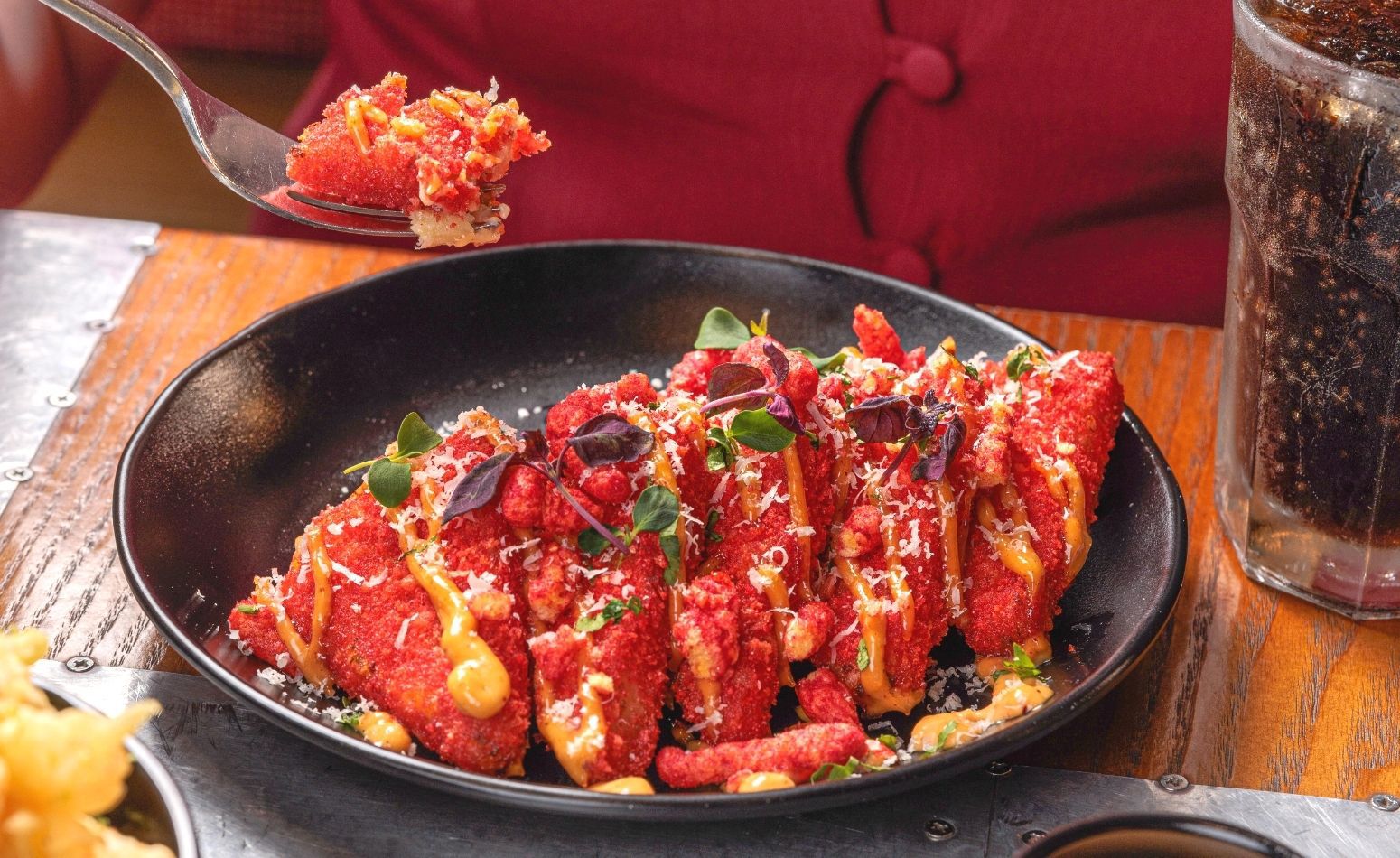 5 pcs deep fried mac n cheese crumbled with flaming cheetos, topped with sakura mix, parmesan cheese and served with original sauce.