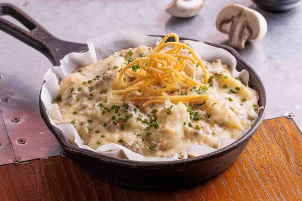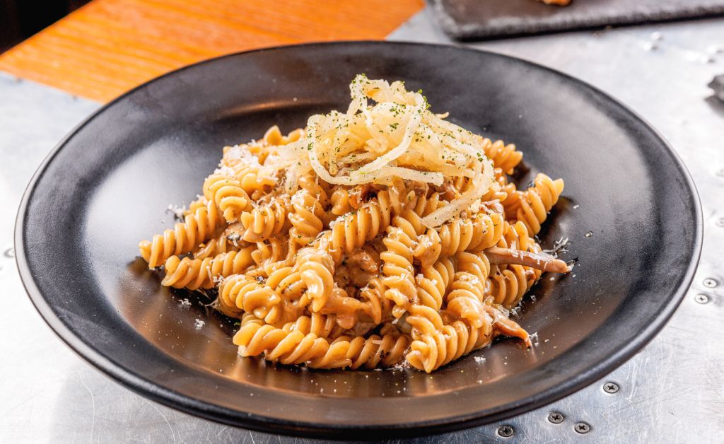 Fusilli pasta with mixed mushroom (oyster, chestnut, shimeji & button) & creamy cheesy sauce.