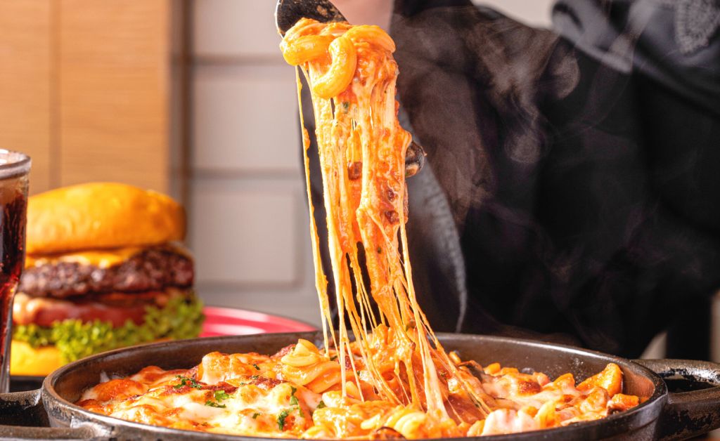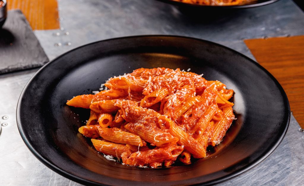 Penne pasta in a special twist of spicy tomato sauce with mozzarella & parmesan cheese.