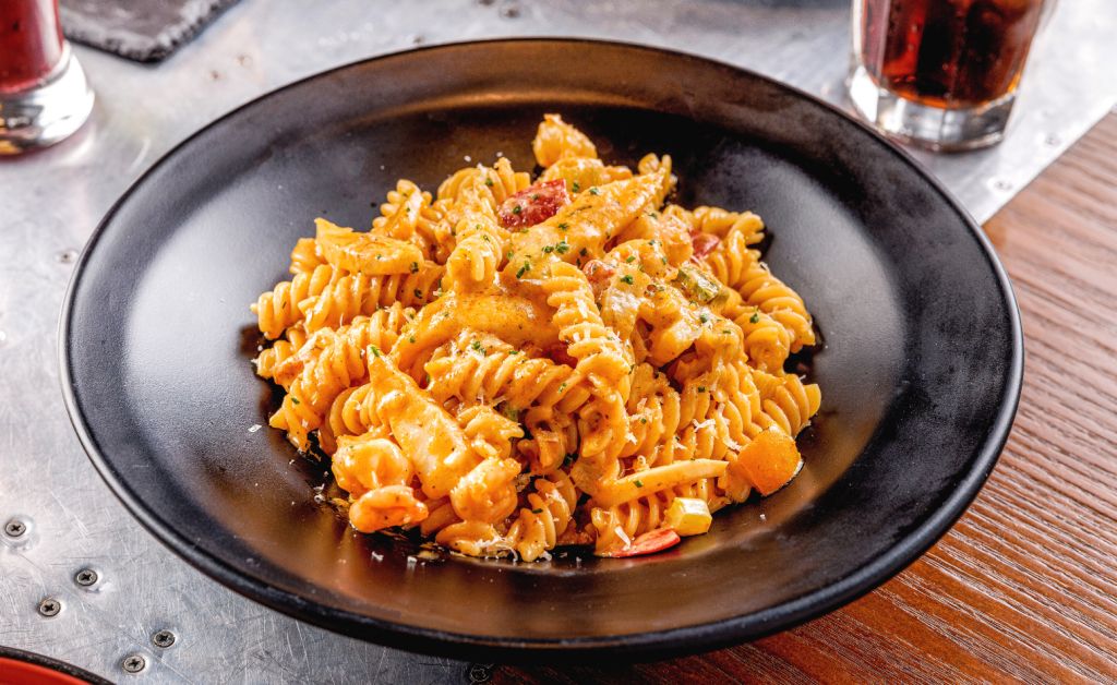 Prawns & cuttle fish, cajun alfredo sauce with fusilli pasta and parmesan cheese.