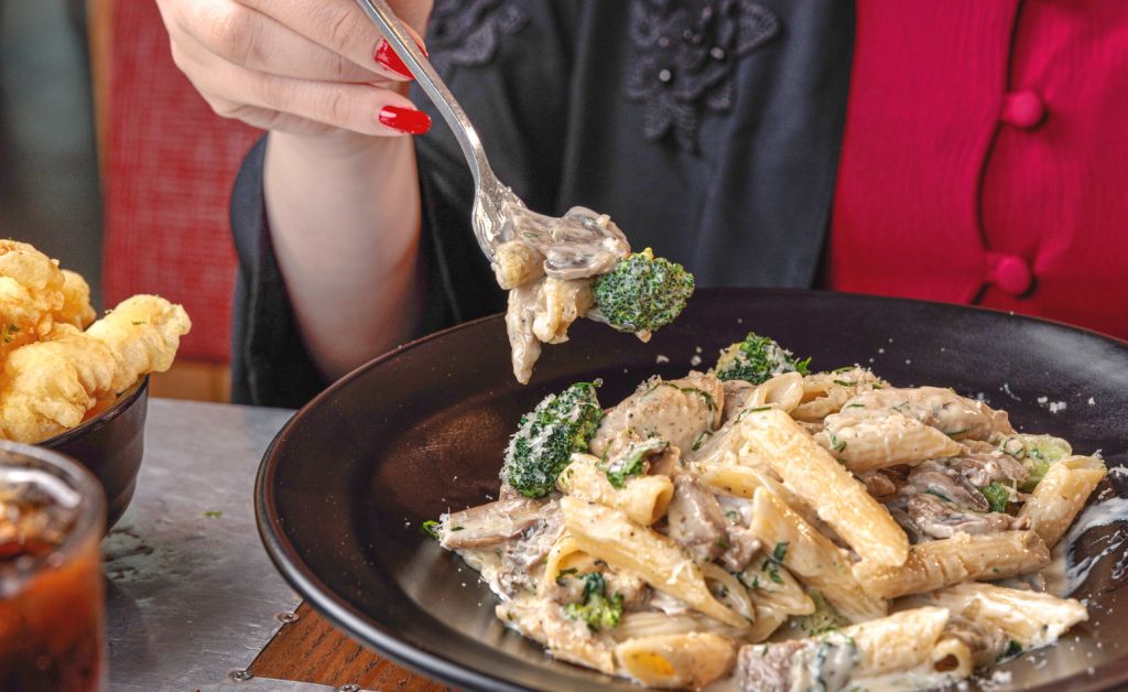 Penne pasta, fresh grilled chicken, broccoli & fresh mushroom, cooked in garlic olive oil with cream & parmesan cheese.