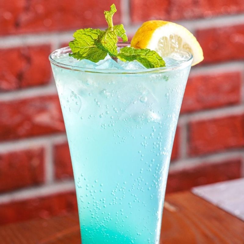 Fresh lemon cubes, brown sugar, lemon juice, blue lagoon syrup, mint leaves & soda. Mixed refreshing flavor.