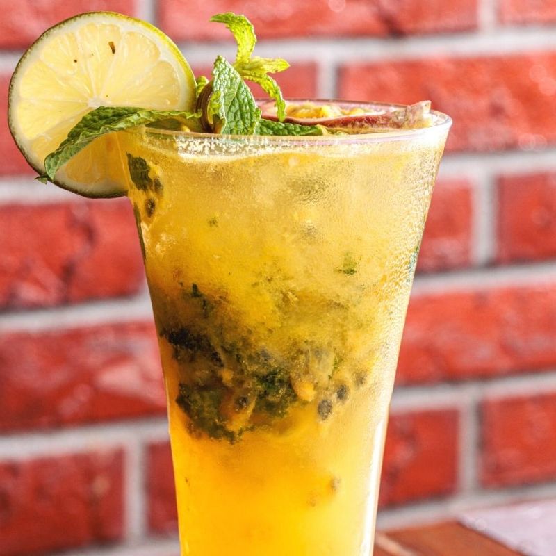 Passion fruit puree, blended with lime & mint, with fresh passion fruit & a touch of soda water.