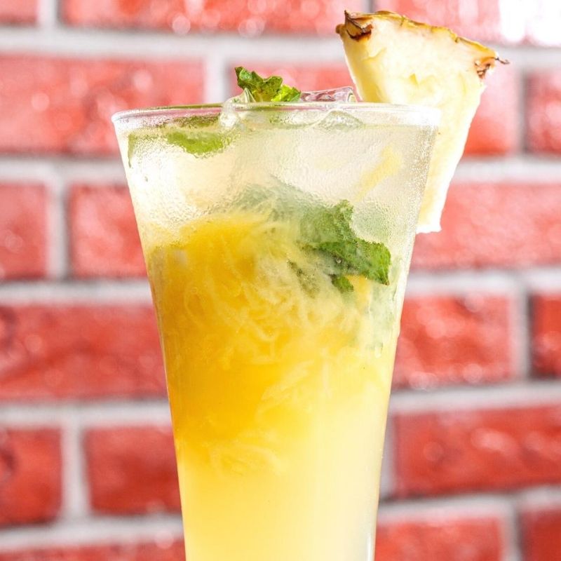 Fresh pineapple muddle with lime, mint leaves & soda water.