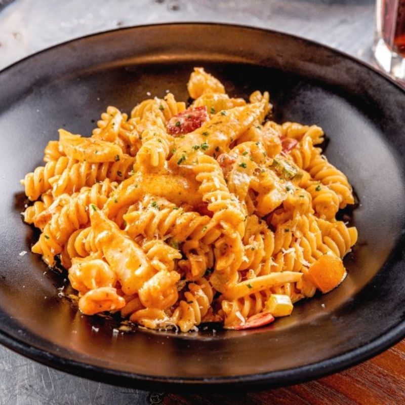 Prawns & cuttle fish, cajun alfredo sauce with fusilli pasta and parmesan cheese.